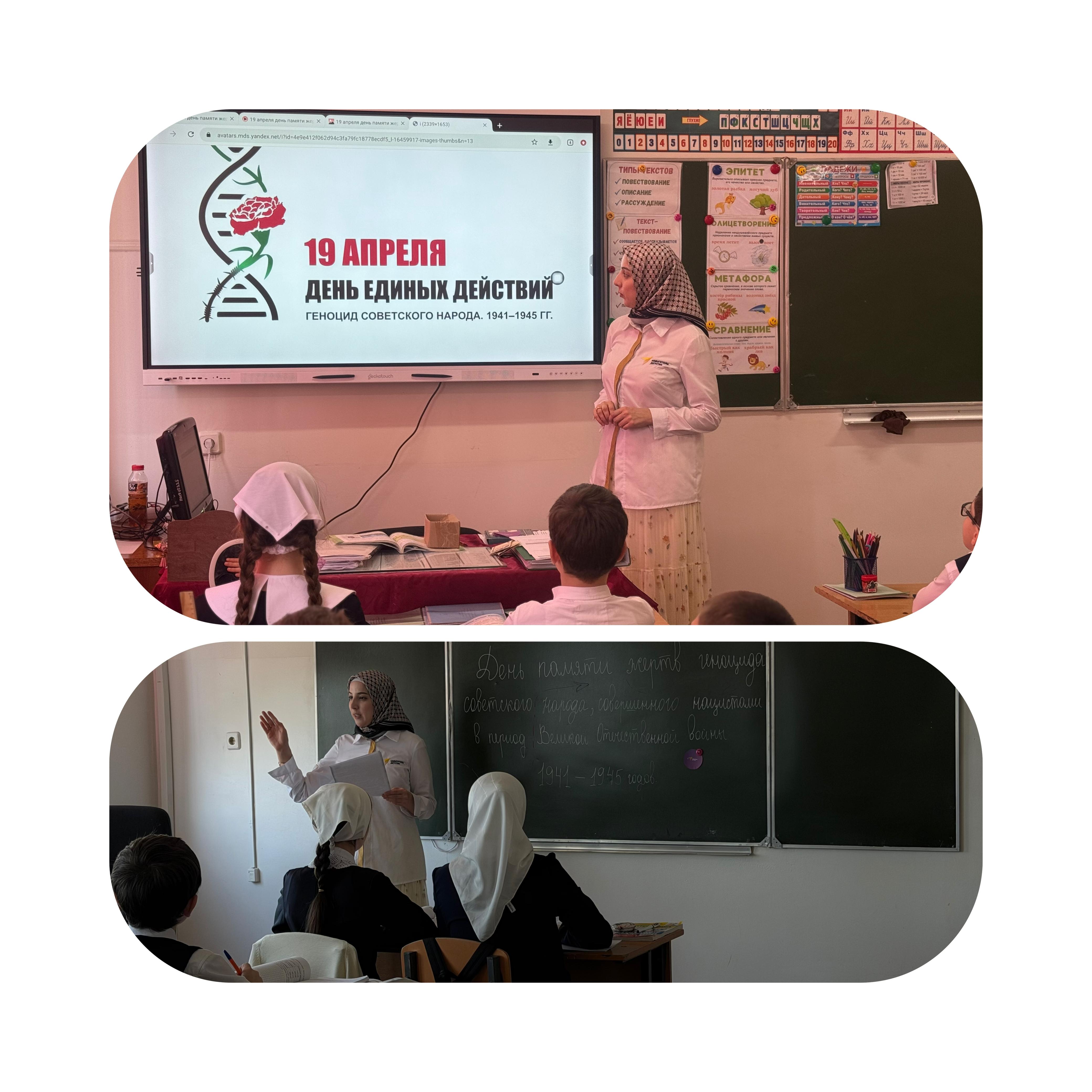 В честь памятной даты советник директора по воспитанию МБОУ «СОШ №2 с.Закан-Юрт им.Д.С.Саитова» Умарова А.К провела для обучающихся час памяти «Без срока давности», с целью формирование у обучающихся понимания необходимости сохранения исторической правды о геноциде мирного населения в годы Великой Отечественной войны, воспитание гражданственности, патриотизма и уважения